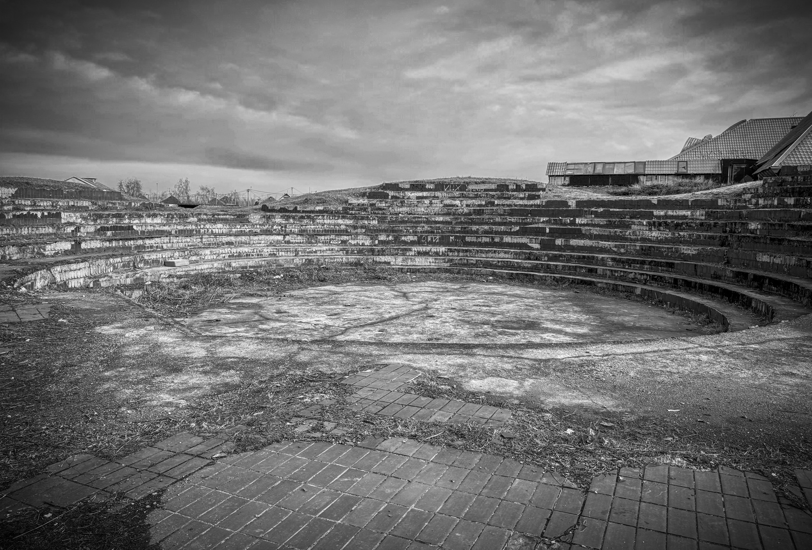 Nature begins its slow but persistent reclamation. Between the bricks of the abandoned city park, wildflowers now grow undisturbed, and the deserted railway tracks are embraced by grass. It is a silent dialogue between the human-made environment and the unstoppable force of nature, reclaiming its space.